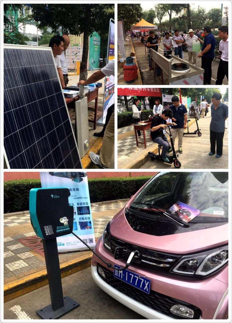 在活動現(xiàn)場,新能源電動汽車、電動滑板車、光伏發(fā)電、節(jié)能爐灶等各種形式多樣的低碳、綠色產(chǎn)品公司參與活動。